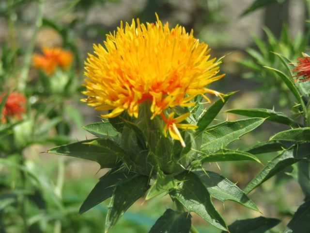 山形県最上地方の栽培が有名で山形県の県花となっているそうです。7月上旬頃からベニバナの花が咲き、ベニバナの花弁を乾燥させたものが「紅花」。血行を促進効果に期待され、婦人病特有の血行障害による生理痛や、産後の腹痛などに効果があるといわれているそうです。養命酒のホームページによると、