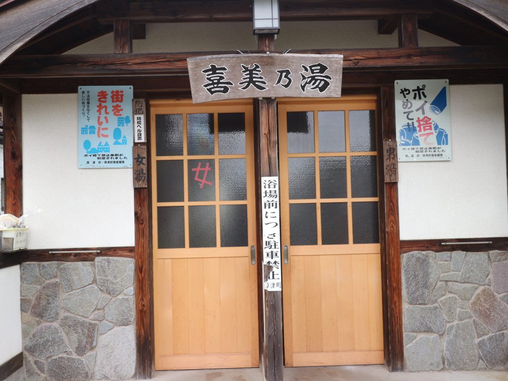 人のおうちにような道ですが、自分を信じて進むと『喜美の湯』があります。