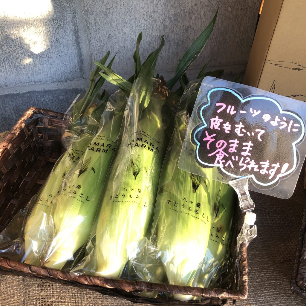 上諏訪駅を出てすぐの居酒屋さんの前で販売していた生とうもろこし。生とうもろこし、その名の通りなんと茹でずに食べられるのです。売っているところがなかなかなくって、見つけた時は私のとうもろこし熱がメラメラ燃え上がり、お持ち帰りしました。家に帰って食べたけど、もんの凄っっっっっく甘くてみずみずしくてほんと〜〜〜に美味しかった!1本350円。またここのとうもろこし食べたいな!